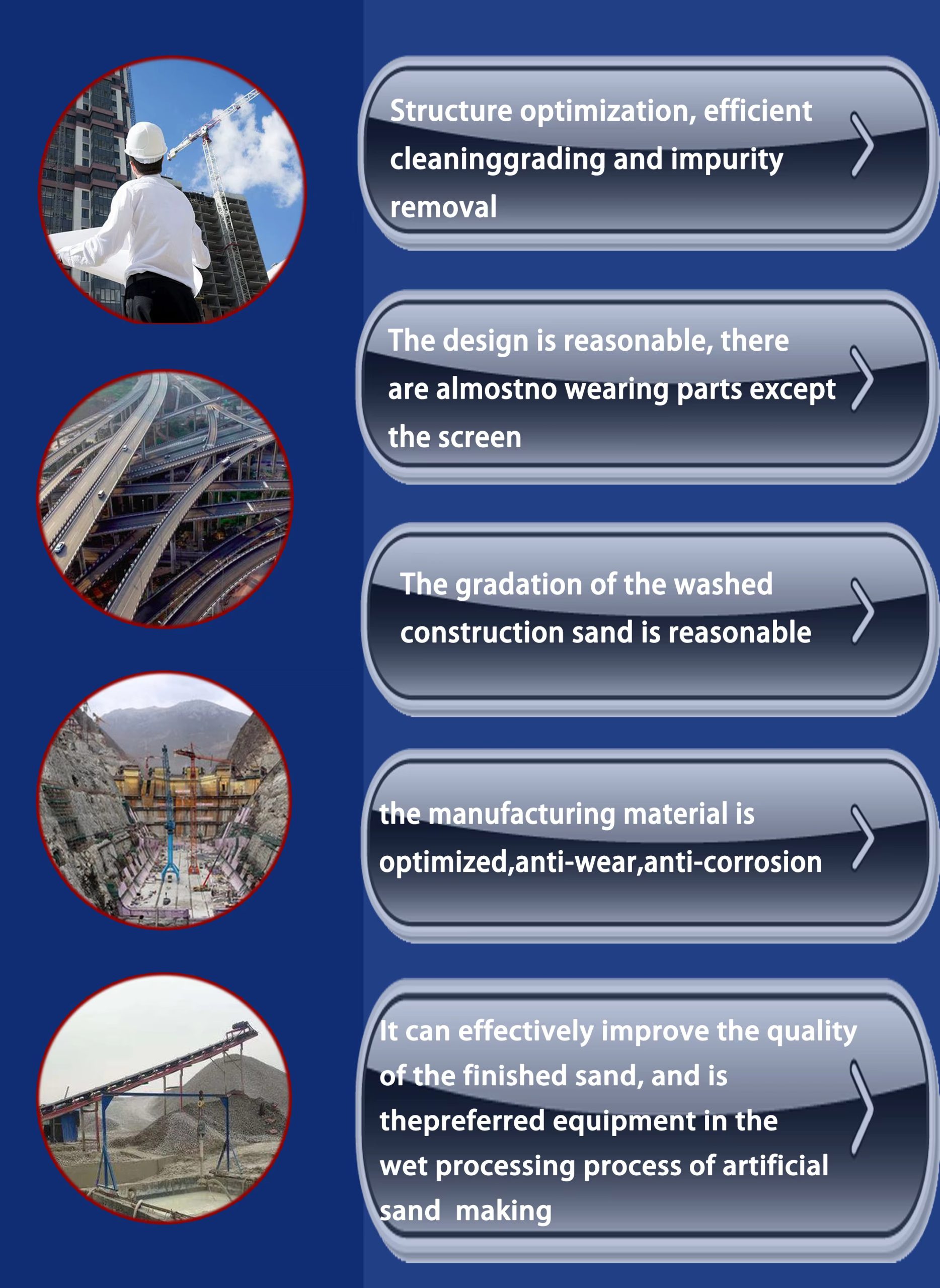 Пескомойка с колесным ковшом серии XSD относится к категории “пескомоечных машин”. Ее основная функция заключается в промывке и отделении мелкого песка от промышленного песка и гравия, что улучшает качество песка. Он отличается разумной конструкцией, удобным обслуживанием, большой производительностью, низким энергопотреблением и высокой эффективностью мойки.